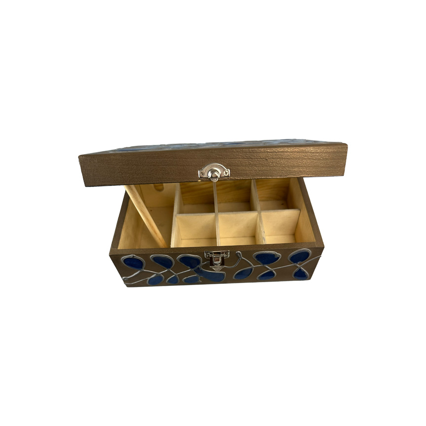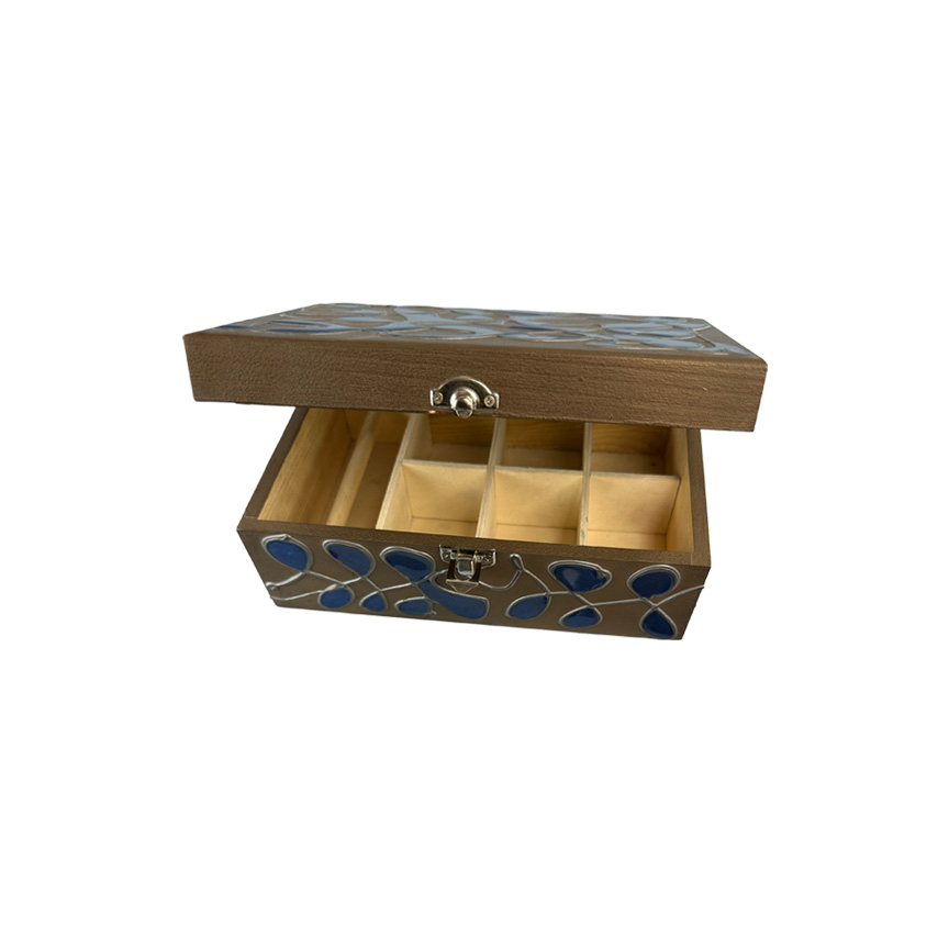 Rankų darbo dėžutė dengta skystu metalu ir epoksidino derva – tai subtilus, modernios estetikos akcentas, sukurtas su meile detalėms. Kiekviena dėžutė yra unikali, rankų darbo, tarsi mažas paveikslas, tad raštas gali minimaliai skirtis.