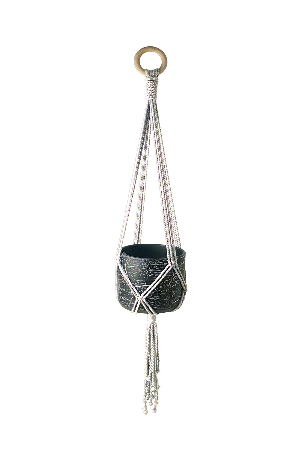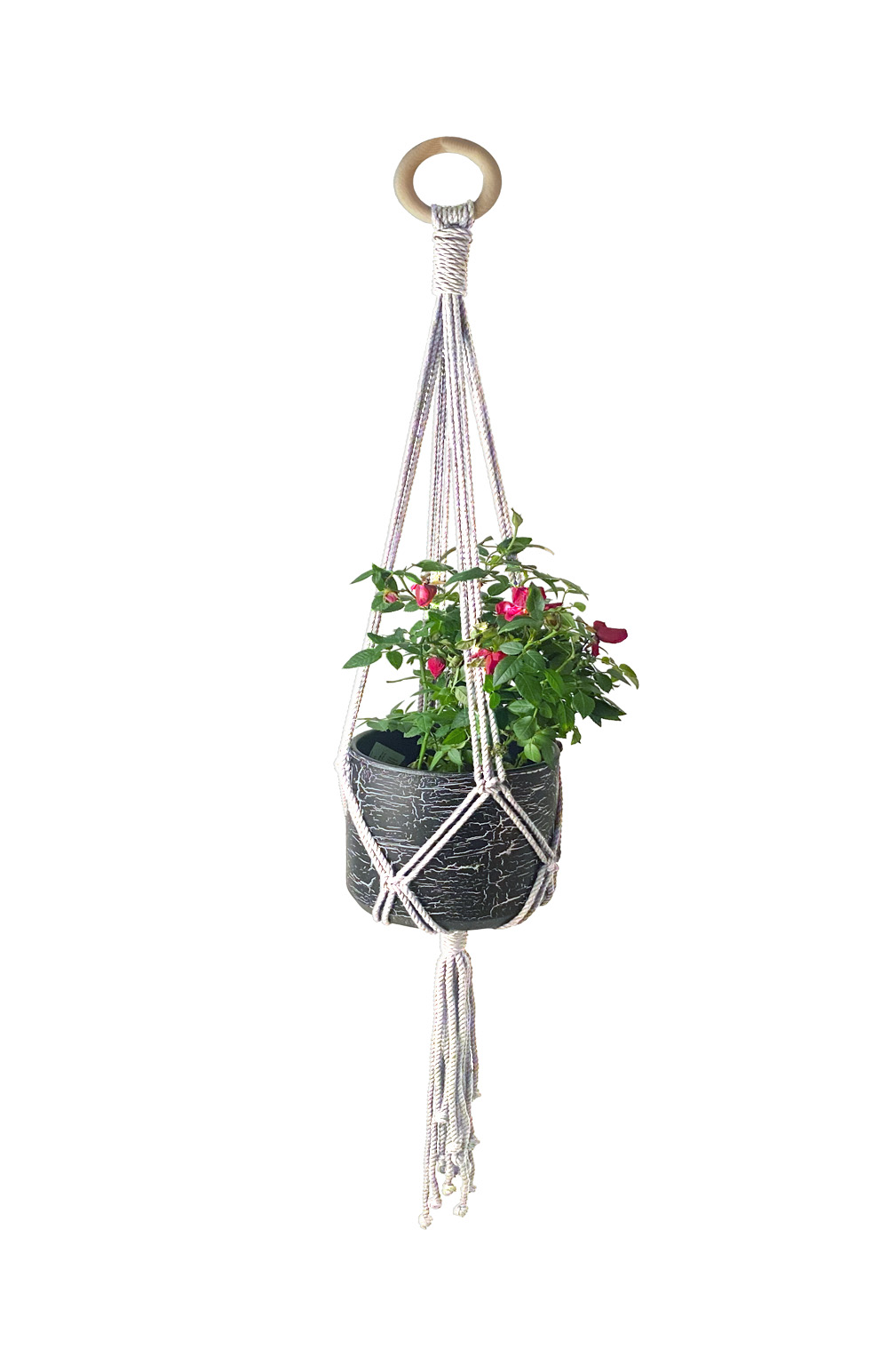 Papuoškite savo namus balkoną ar terasą su šiuo stilingu ir funkcionaliu macrame laikikliu vazonams, kuris sukuria jaukią boho atmosferą. Klasikinio dizaino, kruopščiai pintas iš kokybiškų natūralių siūlų, šis pakabinamas vazonas ne tik išryškins jūsų augalus, bet ir papildys interjerą ar eksterjerą unikaliu akcentu.