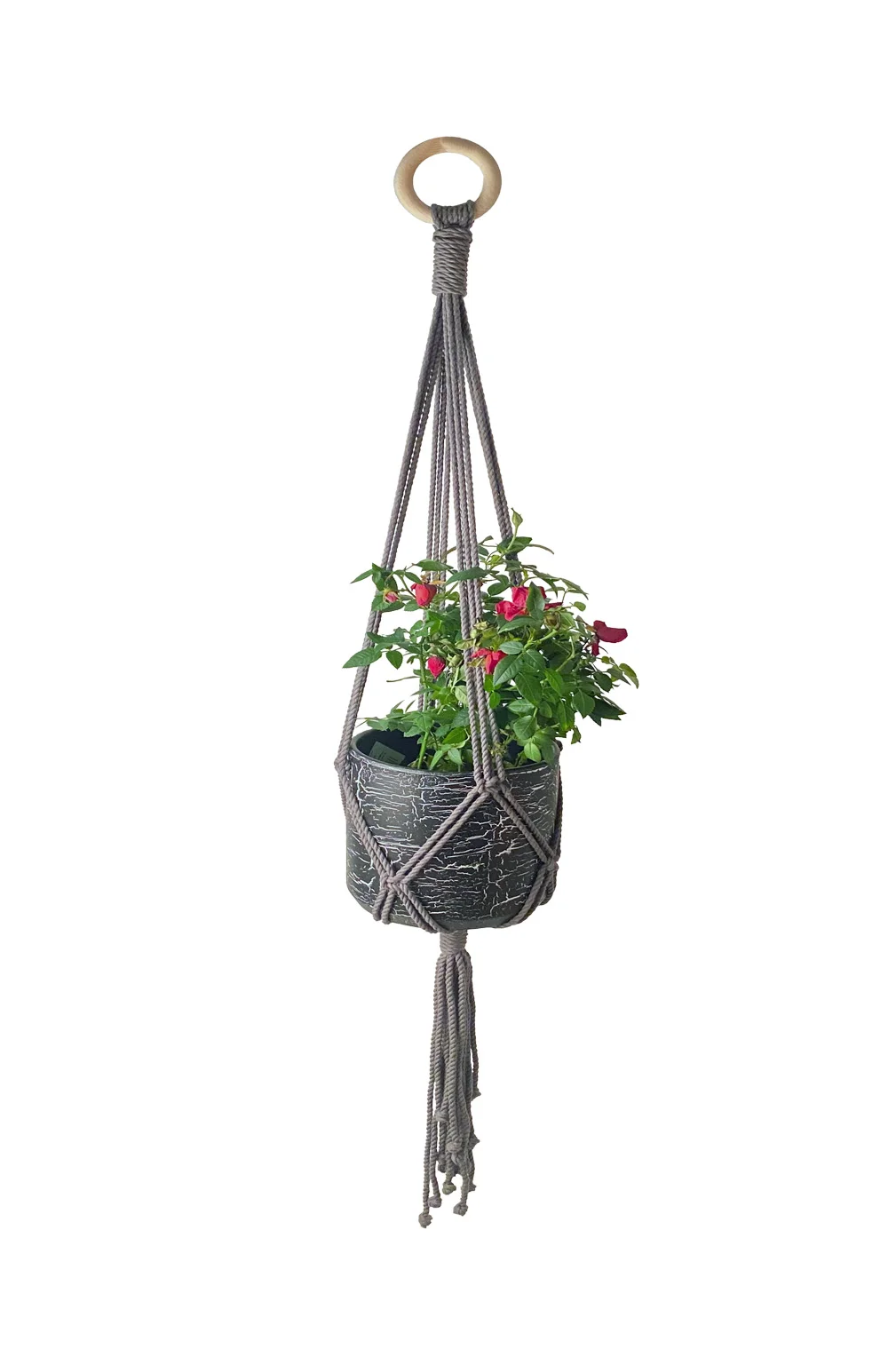 Papuoškite savo namus balkoną ar terasą su šiuo stilingu ir funkcionaliu macrame laikikliu vazonams, kuris sukuria jaukią boho atmosferą. Klasikinio dizaino, kruopščiai pintas iš kokybiškų natūralių siūlų, šis pakabinamas vazonas ne tik išryškins jūsų augalus, bet ir papildys interjerą ar eksterjerą unikaliu akcentu.