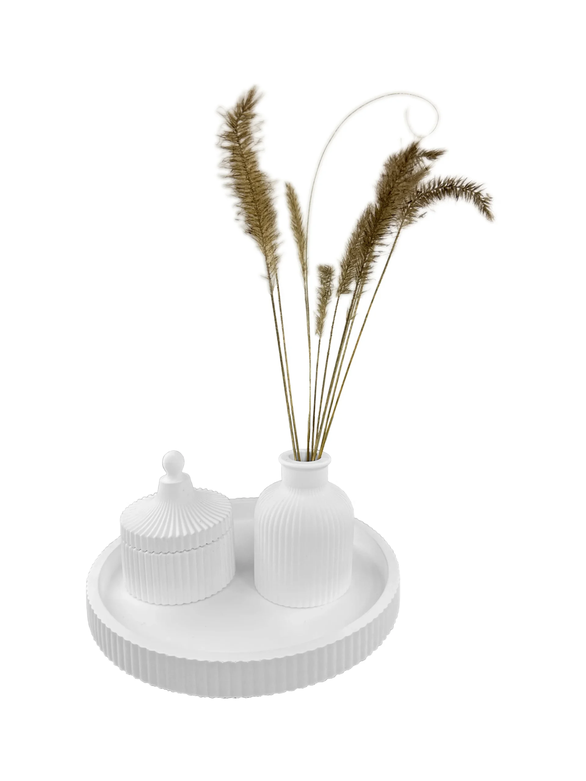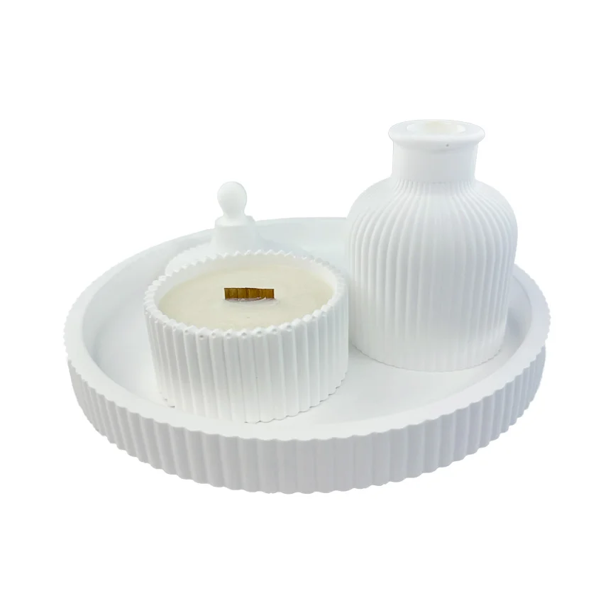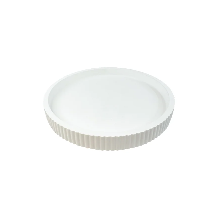 Minimalistinis rankų darbo padėklas iš mineralinės dervos – funkcionalus ir estetiškas interjero elementas. Subtili apvali forma ir vertikalios tekstūros kraštai suteikia modernumo, o matinė balta spalva leidžia lengvai derinti su įvairiais dekoro elementais.