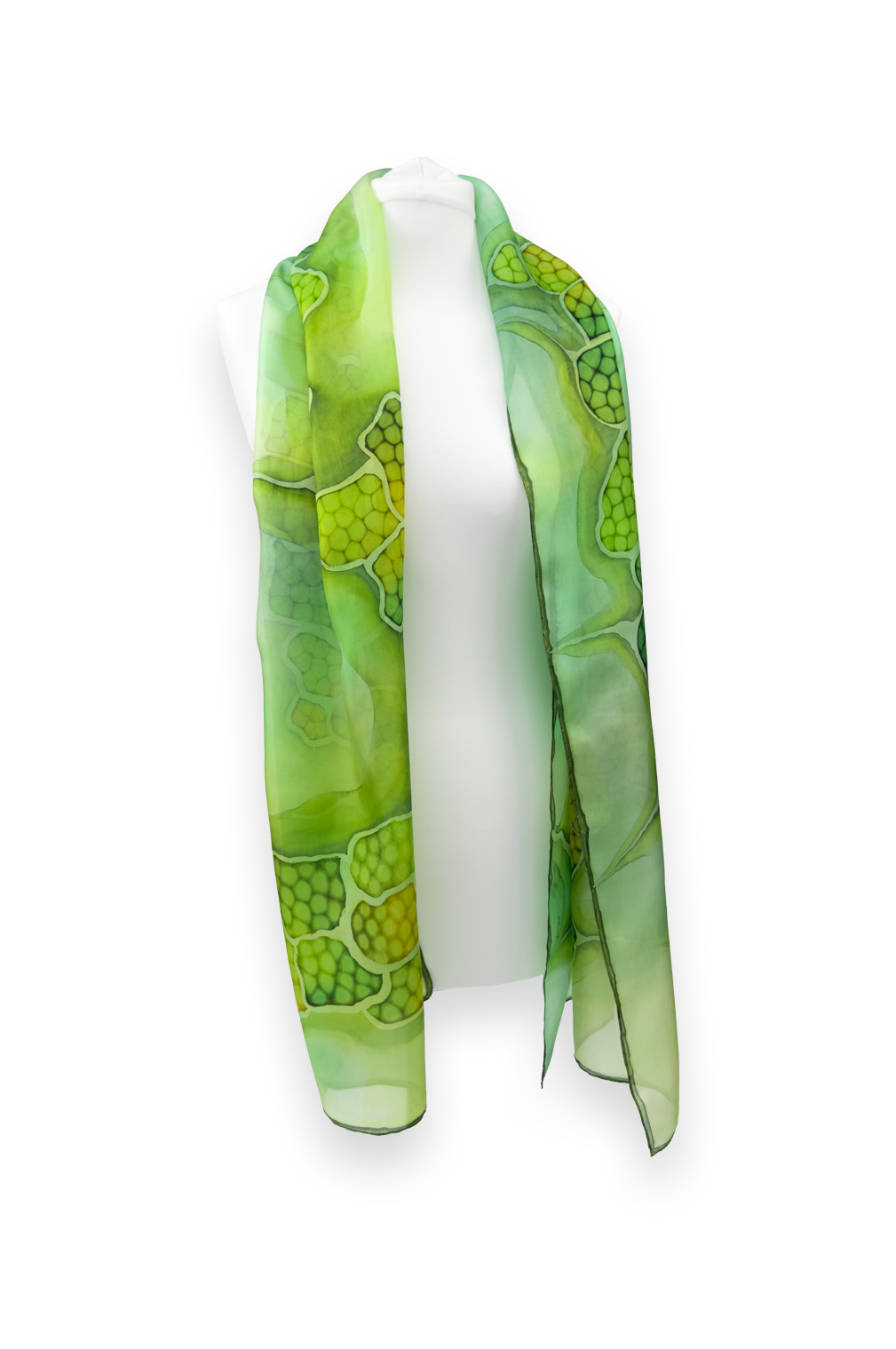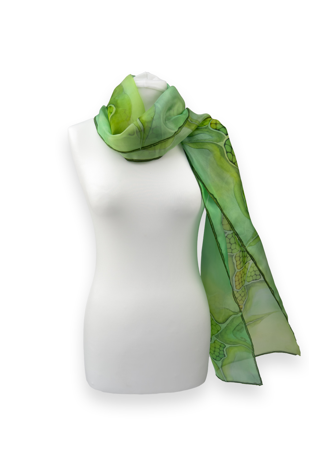 Šilko satino skara – Green Maat Rankomis dažytas šilko šalikas.