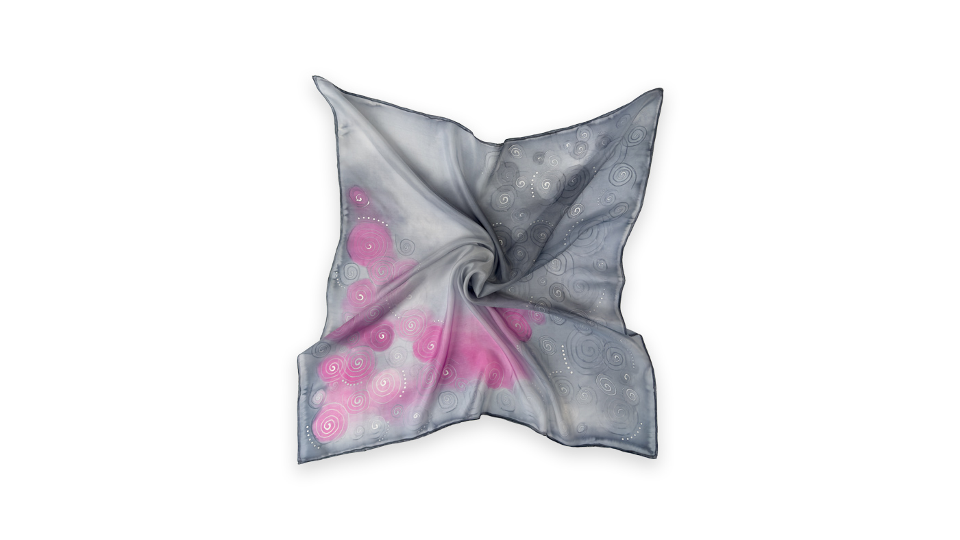 Šilko satino skara - Grey Rose Bahiti Rankomis dažytas šilko skara.