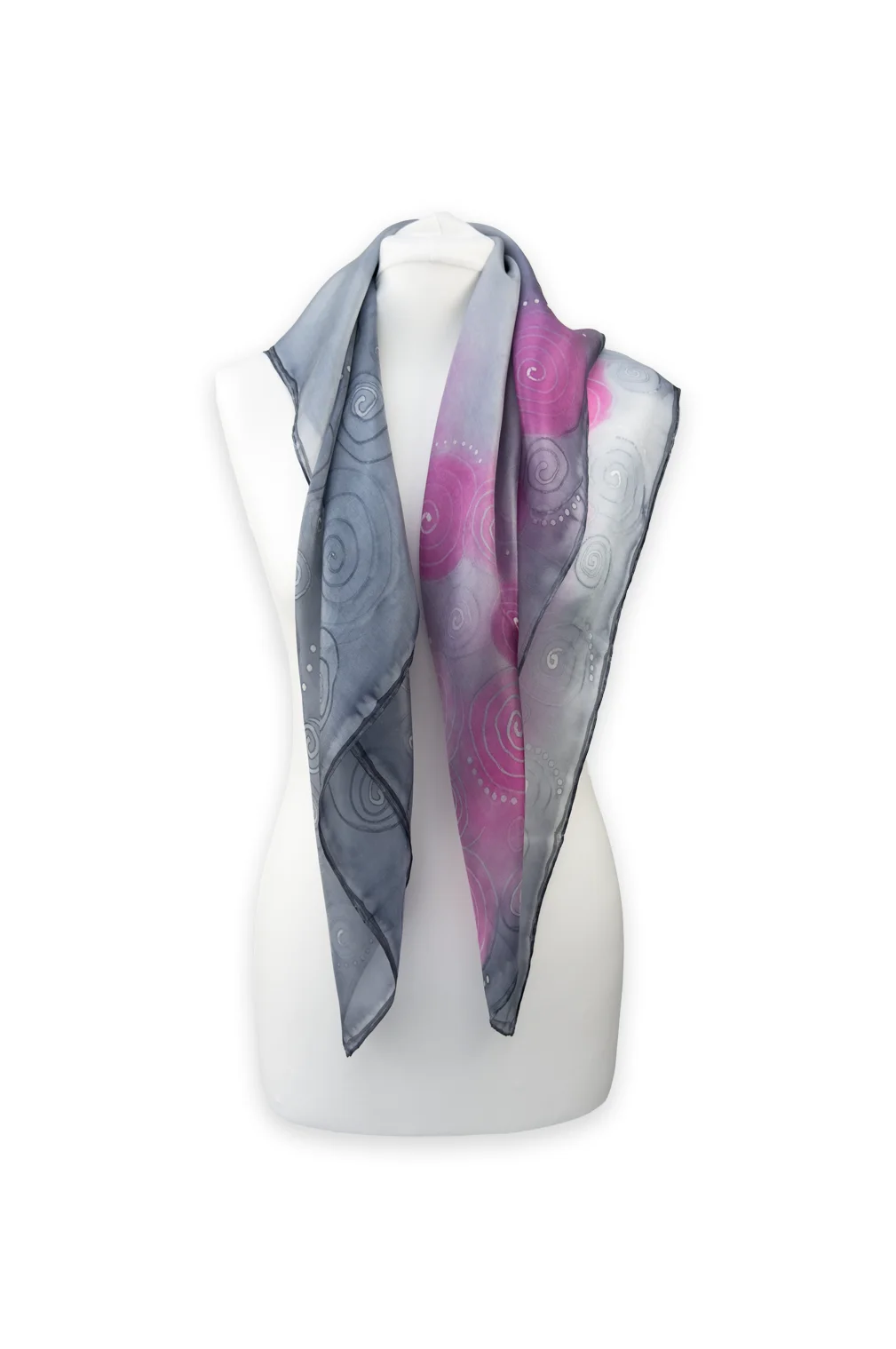 Rankų darbo šilkinė skara Grey Rose Bahiti – lengva elegancija kasdienai ir ypatingoms progoms