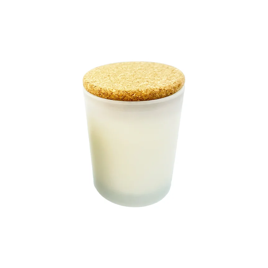 Sojų vaško žvakė su švelniu, raminančiu aromatu, L dydžio apvaliame BLIZGAUS balto stiklo indelyje, kamščio dangteliu